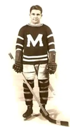 In 1932, he returned to the ice as a reserve referee, but was suspended for inefficient refereeing in 1934.[26] In 1942 he played in an old-timers benefit game for Victory Loans, Montreal Canadiens versus Maroons.[27] He was a coach at Loyola College (Montreal) (now part of Concordia University),[28] winning the Dominion Intermediate Intercollegiate Championships[29] and one of the first ten named to their Hall of Fame in 1967.[30]