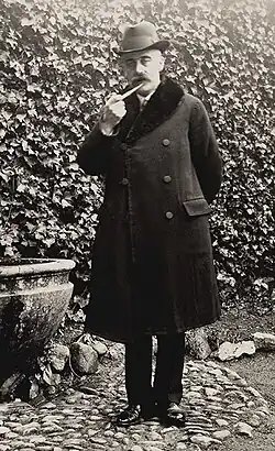 In 1902 he abandoned an agrégation in English at the Sorbonne, and travelled instead to Florence, where he became friends with Violet Paget.[4] Du Bos then spent time in Berlin in 1904 and 1905, where he stayed with Reinhold and Sabine Lepsius and became friends with Max Liebermann, Ernst Robert Curtius and Bernard Groethuysen.[4] In this period he studied the history of art under Heinrich Wölfflin and came into contact with Georg Simmel.[4] While in Germany Du Bos arrived at a set of beliefs about religion and its relation to art to which he would adhere for the following quarter of a century.[5]