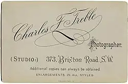 - ^ "Vintage Charles F Treble London Cabinet Card Photo - Older Woman". eBay. eBay Inc. Retrieved 20 September 2024.