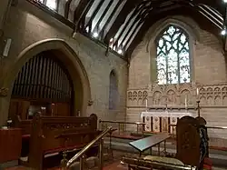 In 1887 he resigned the living at St Andrew's and became the first vicar of the recently consecrated St Michael and All Angels Church at Beckwithshaw, because it was hoped that his health would improve in the "comparative retirement" of this "quiet and secluded parish".[2][15][33] He was nominated to the living of £200 per annum and the promise of a future vicarage by Dr Williams of Moor Park; his preferment was announced on 7 January 1887 and he was licensed to the post by the Bishop of Ripon on 17 March 1887.[24][33][34][35][36] He was a fellow of the Royal Geographical Society and was one of many members of that society to be innocently duped by the Society of Science, Letters and Art, London. He was a member of the Pannal School Board, and he concerned himself with the welfare of the Church.[2][33] It was his success in dealing with parochial institutions and his "practical pulpit utterances," making St Andrew's a foremost church in its district, which recommended him for this new position.[33]