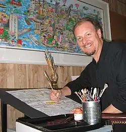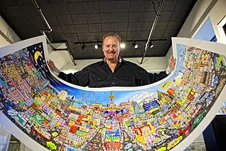 Charles Fazzino is an American pop artist, known for his silkscreen serigraphs in a 3D pop art style. His artwork is influenced from urban landscapes, sporting events, and celebrities.[1]