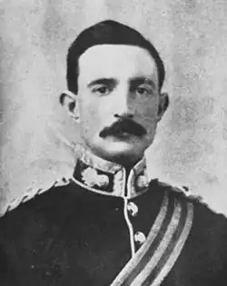 He was commissioned as a subaltern, with the rank of lieutenant, into the 3rd (Militia) Battalion of the South Staffordshire Regiment in February 1885.[2] In November 1886 he transferred to the Royal Fusiliers, and the Regular Army.[3] His early career with his new regiment, however, was blighted by several bouts of illness and he spent much of his time in administrative and staff roles.[4]