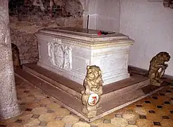 Charles Frederick and Anna left for the Gottorp ducal share of Holstein in 1727, taking residence in Kiel Castle, where Anna died following the birth of their son in 1728. Charles Frederick spent the rest of his life in Holstein-Gottorp at Kiel. His prime concern was to secure his son's succession to the Russian throne. He did support his followers in Sweden also, but did not pay much attention to Holstein-Gottorp. Before a member of the family of Holstein-Gottorp was to sit on either the Swedish or the Russian throne, Duke Charles Frederick died in 1739 in Rohlfshagen,[2] today part of the town of Rümpel. His grave is in the Cloister Church at Bordesholm.