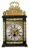 Gretton's spring clocks were usually in an ebony-veneered or ebonized case with little or no decoration, other than the carrying handle. Gretton was, however, an early user of gilt basket-top cases. Most clocks originally stood on ebonized pad feet. Some peak-period spring clocks could be housed in a marquetry or kingwood case.