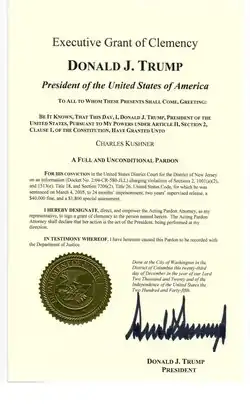 On December 23, 2020, President Trump issued a full and unconditional pardon to Kushner, his daughter's father-in-law,[30] citing his record of "reform" and "charity".[3][4]