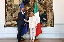 In September 2022, Michel met with Saudi Crown Prince Mohammed bin Salman at his palace in Jeddah to discuss strengthening cooperation between the EU and Saudi Arabia.[32] In February 2023, Michel met with Ethiopian Prime Minister Abiy Ahmed in Addis Ababa to normalize EU-Ethiopia relations that had been damaged by the Tigray War.[33][34] In September 2023, Michel condemned Azerbaijan's offensive in Nagorno-Karabakh and urged the country to immediately stop its military activities and return to dialogue.[35] In October 2023, he said that Russia "betrayed the Armenian people" after Azerbaijan regained control of the disputed zone from Armenian separatists.[36]