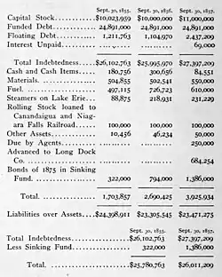 A meeting of the stock and bondholders held at No. 13 Broad Street, New York, September 23, 1857. For the purpose of inducing them to subscribe for the new loan. President Moran made an address which is to-day a graphic and in some respects an amusing – exhibit of the company's situation and tribulations in that critical year. He began by presenting a statement of the financial condition of the company (see image).[11]