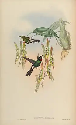 - 1845 Nouvelle espèce d’Oiseau-Mouche Revue Zoologique par La Société Cuvierienne 7:253 biodiversitylibrary.org