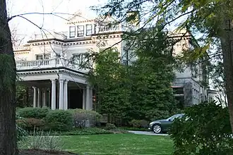 The Charles Riley House is a historic house in Newton, Massachusetts. This large neo-Classical estate house started out as a more modest wood-frame structure built in the 1870s by Boston businessman Job Turner. In c. 1888 Charles Riley, a manufacturer of cotton processing machinery, greatly expanded the house, giving it the present neo-Classical styling, and finishing the exterior in brick and stone.[2]
