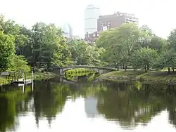 Charles River Reservation is a 17-mile-long (27 km) urban preserve and public recreation area located along the banks of the Charles River in Boston, Cambridge, Watertown, and Newton, Massachusetts. The reservation is managed by the Massachusetts Department of Conservation and Recreation. The portion of the reservation between the Charles River Dam and the Eliot Bridge is listed as a historic district on the National Register of Historic Places. This includes the park in the Back Bay neighborhood of Boston known as the Esplanade. The Charles River above the Watertown Dam is managed as the Upper Charles River Reservation.[3]