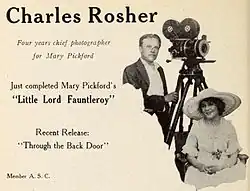 In 1913, Rosher went to Mexico to shoot newsreel footage of Pancho Villa's rebellion. In January 1919, he was one of the 15 founders of the American Society of Cinematographers and served as the group's first vice-president. In the 1920s, he was one of the more sought-after cinematographers in Hollywood, and was a personal favourite of stars such as Mary Pickford, working with her, first on A Little Princess (1917), then on all the films she acted in from How Could You, Jean? (1918) to My Best Girl (1927).[1]