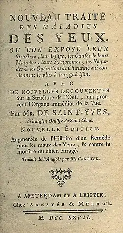 - online copy of Saint-Yves' Nouveau Traité des maladie des yeux (1736 Dutch edition in French).