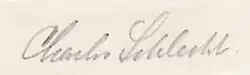 Charles Schlecht (1843-1905) was an engraver at the US Bureau of Engraving and Printing. He did the engraving for the 1896 Educational Series one-dollar bill: History Instructing Youth.