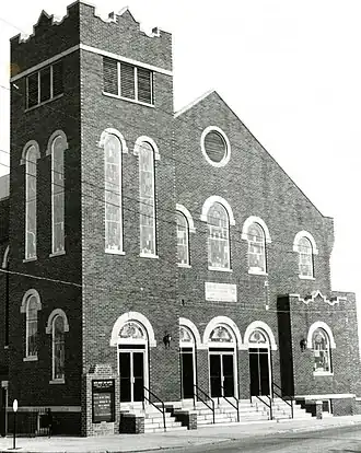In 1910, he designed his first building for Virginia businesswoman Maggie Walker. The building was constructed as a bank but is now known as the St. Luke Building with 12 apartments on the upper levels. It is now being renovated to create loft apartments.[2] The building was listed on the National Register of Historic Places in 1982.[7][8] In 1915 he designed a home for a doctor named William Henry Hughes.[9] He was also hired to remodel the 1873 Ebenezer Baptist Church in Jackson Ward.[10] He altered the design of the church from Victorian Gothic to Neoclassical and added four unique spires to the top of the church in place of a steeple.[11] He designed the Rialto Theatre in Petersburg, Virginia which was completed in 1923.[12] In 1925,[13] the historic Sixth Mount Zion Baptist Church was remodeled and extended by Russell.[14]