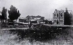 Torlesse held town section (TS) 732 in trust for Felix Wakefield, a brother of Edward Gibbon Wakefield. The section fronted onto both Cathedral Square and Hereford Street. From 1863, Torlesse was in partnership with Henry Matson, and operated as land agents under the banner of Torlesse & Matson.[9] On the evening of 4 June 1864, a fire started in their building and a large number of wooden buildings were destroyed.[10] Torlesse then bought the section of Wakefield for £1145, and commissioned builders Balke and Brouard to build a new two-storey stone building fronting onto Cathedral Square for £1124. This building was the first building made of permanent material in the Square and became known as the Torlesse Building. It was demolished in 1916, and the Strand picture theatre was built in its place. Today, part of the land is occupied by the ANZ Bank (itself due to be demolished due to earthquake damage), Strand Lane and a building housing a public toilet.[9]