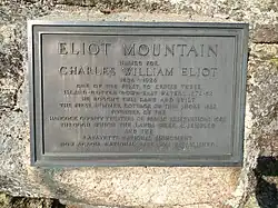 Eliot House, one of the seven original residential houses for undergraduates at the college, was named in honor of Eliot and opened in 1931.[38] Charles W. Eliot Middle School in Altadena, California, Eliot Elementary School in Tulsa, Oklahoma, Charles William Eliot Junior High School (now Eliot-Hine Middle School) in Washington, DC were named in his honor. In 1940 the United States Postal Service issued a stamp in Eliot's honor as part of their Famous Americans Issue.[39] Asteroid (5202) Charleseliot is named in his honor. [40] Eliot Mountain was named in honor of the lifelong academic who summered on Mount Desert Island, Maine, and was a key figure in the creation of Acadia National Park.[41][42][43]