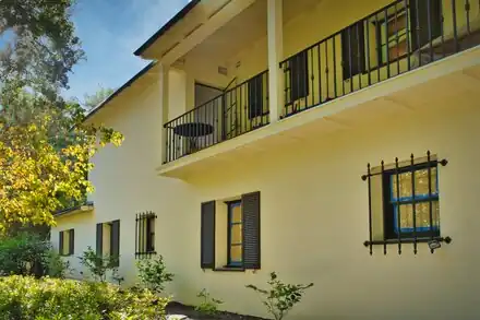 Built in 1938, the house's architecture reflects elements of Spanish Colonial Revival architecture.[2] However, with the house's two stories, low-pitched roofline, and second-story balcony on the front elevation, it also reflects Monterey style architecture, popular in large California homes built between 1925 and 1940.[3][2]