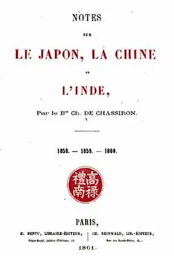 Chassiron wrote an account of his travels Notes sur le Japon, la Chine et l'Inde: 1858-1859-1860.[2][3]