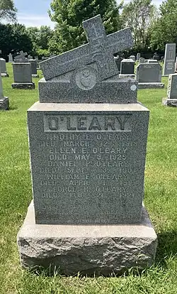 Born in Chicago, Illinois to Irish immigrants Timothy and Ellen O’Leary,[2] who had 16 children (11 boys). O'Leary worked at age 16 for a clothing company and played on the company's semi-pro baseball team. In 1900, while working as a messenger boy, he was sent to the ballpark of the Chicago White Stockings; when their shortstop, Frank Shugart, was injured, O'Leary was recruited on the spot, based on the recommendation of someone who knew him.[3] His talent as a middle infielder and scrappy hitter came to the attention of Charles Comiskey, owner of the White Stockings (later the Chicago White Sox). Though there is no independent verification, O'Leary reportedly signed briefly with the team,[4] only to have his arm broken from a pitched ball thrown by 'fireballer' and Hall of Famer Rube Waddell.[3]