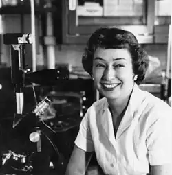 She graduated from Hunter High School in 1940 and Hunter College in 1944.[3] That same year, she enlisted in the United States Navy.[4] As a lieutenant junior grade she worked in the hematology laboratory at U.S. Naval Hospital Shoemaker, California.[4] After the war ended she enrolled as a graduate student in the Department of Microbiology at Yale, where she received her PhD in 1950 with a thesis on the effects of sodium salicylate (aspirin) on antigen-antibody reactions[5] During her time at Yale she frequently traveled to New York to consult with Elvin Kabat and Michael Heidelberger, eminent immunologists at Columbia.[5] As a post-doc she worked at the Sloan-Kettering Institute under the direction of Cornelius P. Rhoads. While at Sloan-Kettering, she met Cecily Cannan Selby, who had recently earned her Ph.D. from the Massachusetts Institute of Technology. Both scientists were interested in cell structure. Once, when looking through an unused electron microscope at the university, they decided to look at fine structures within the cells of the Ehrlich ascites carcinoma, a commonly used model for cancer research. What they found were structures in the cytoplasm of the cells which resembled those found in virus-infested cells. It was this incident that sparked Friend's interest in the possibility of cancer being caused by viruses, which became a main focus of her research. In 1966 she accepted a position as professor and director of the Center for Experimental Cell Biology at The Mount Sinai Hospital.