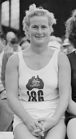 In 1940, MacGibbon won her first national title in the javelin throw, aged just 15. In total, she won six national championships between 1940 and 1952, including two in the discus throw; she also placed third in the shot put in 1947. At the 1950 British Empire Games she became the first Australian athlete to win an international throwing event,[3] taking the javelin with a distance of 38.84 m.[4]
