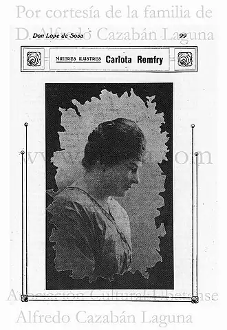 5. ^ Cazabán, Alfredo (Αpril 1919). «Carlota Remfry». Don Lope de Sosa (Úbeda —Jaén—) (76): 99–101. (in Spanish)