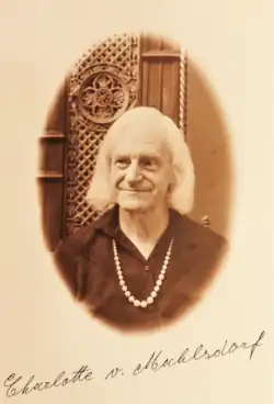 Charlotte von Mahlsdorf (18 March 1928 – 30 April 2002) was a well-known transgender woman in East Germany and founded the Gründerzeit Museum in Berlin-Mahlsdorf. Later she became a LGBT-icon in Germany because of Rosa von Praunheim's biopic I Am My Own Woman (1992).[1]