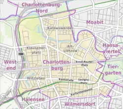 Location of Charlottenburg in Charlottenburg-Wilmersdorf and Berlin