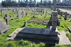 Charlton Cemetery is a cemetery, opened in 1855, covering 15 acres of ground in Charlton, south-east London. Situated in Cemetery Lane to the east of Charlton Park, the cemetery has retained its Victorian layout, and features two 19th-century chapels and numerous military graves.[2]
