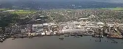![]() Aerial view of Charlton Riverside, seen from the north looking south, 2018 | |