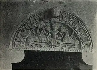 The Church of England parish church of Saint Peter is Grade I listed. It has some twelfth-century parts and a turret with two medieval chiming bells. Noteworthy is the tympanum of the church, with a Romanesque relief depicting the ascension of Alexander the Great to the sky,[5] a legendary episode from a version of the so-called Pseudo-Callisthenes (the Alexander Romance). Along with the churches of Longworth, Hinton Waldrist, Lyford, Buckland, Pusey and Littleworth, it is part of the Benefice of Cherbury with Gainfield.[6]