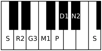 | Avarohanam | Ṡ N₂ D₁ P M₁ G₃ R₂ S |