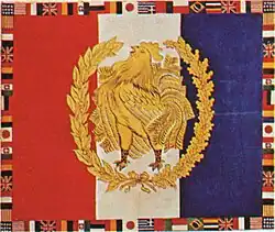 After 1912, with the development of the Art Deco style, Charvet, along with fashion designer Paul Poiret, started to commission art work from the French painter Raoul Dufy,[127] the "granddaddy of modem chic",[128] through the French weaver Bianchini-Férier.[129] Some of the first were related to the war, such as Les Alliés or the Victory Rooster (Figure, left).[130] This was followed by more silk squares, woven silk fabrics for vests,[25] and printed ramie fabrics for dressing gowns and shirts.[131] Some famous customers of the period were fashion designer Coco Chanel[132][n. 14] and the Maharadjah of Patiala who once placed a single order of 86 dozen shirts.[134]