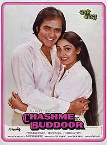 Chashme Buddoor (transl. Far be the evil eye) is a 1981 Indian romantic comedy-buddy film directed by Sai Paranjape and produced by Gul Anand and his sister Jayshree Anand–Makhija. The film stars Farooq Sheikh, Deepti Naval, Rakesh Bedi, Ravi Baswani and Leela Mishra in lead roles. The story revolves around three close friends who fall in love with a girl named Neha. Two of the friends fail to woo her and decide to seek revenge after discovering that their third roommate is dating the girl. The plot is inspired by K. Bhagyaraj's 1981 movie Indru Poi Naalai Vaa.[1] A remake version directed by David Dhawan and the original digitally restored film were both released on 5 April 2013.[2][3] The lyrics written by Indu Jain were composed by Raj Kamal and sung by Yesudas and Hemanti Shukla.