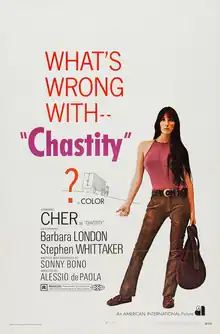 Chastity is a 1969 American romance drama film directed by Alessio de Paola and starring American singer-actress Cher, in her first film role without her then-husband Sonny Bono.[1][2] Written and produced by Sonny Bono, as a star vehicle for her, it was a box-office failure and deterred her from acting in films for more than a decade.[3][4][5]