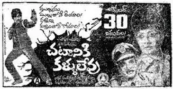 Chattaniki Kallu Levu (transl. The Law Does Not Have Eyes) is a 1981 Indian Telugu-language vigilante action film directed by S. A. Chandrasekhar. The film stars Chiranjeevi, Madhavi, Lakshmi, Hema Sundar and Kannada Prabhakar in important roles. It is a remake of Chandrasekhar's 1981 Tamil film Sattam Oru Iruttarai.[2] The film was released on 30 October 1981 and became a commercial success.[3]