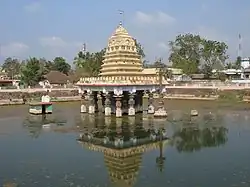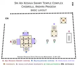 The Chaturmukha Brahmalingeswara Swamy temple, built by Raja Vasireddy Venkatadri Nayudu about 200 years ago, is one of the rare temples dedicated to Lord Brahma, who is worshipped alongside Lord Shiva. Vasireddy Venkatadri Nayudu also strengthened other temples and undertook the restoration of Chebrolu.[11] The village was a known Buddhist site during the Satavahana and Ikshvaku periods, and several Buddhist artefacts have been unearthed. The presence of inscriptions suggests that Jain and Jewish communities also had a presence, with a Jain temple from the 11th century and a Jewish synagogue dedicated to the Children of Yacob.[12] The famous Nageswara Swamy Temple and Galigopuram were built by the Devabhaktuni brothers Kanttanna and Murthanna. An inscription by Jayapa mentions a Jain temple of Ananta Jina, to which he made grants in 1213 AD.[13]