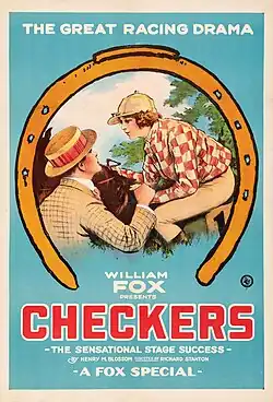 Checkers is a 1919 American silent melodrama film, directed by Richard Stanton. There are no known archival holdings of the film, so it is presumably a lost film.[3] The film is based on the screenplay with the same name by Henry Blossom. Mazie LaShelle Hunt and Marjorie Seely Blossom, the widows of Kirke La Shelle and Henry Blossom respectively, filed a lawsuit in the Supreme Court against Fox Film regarding the sale of the film.[4]