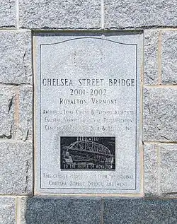 The Chelsea Street Bridge spans over the White River, carrying Chelsea Street south from Vermont Route 110 into the village of South Royalton. Chelsea Street is the major axis of the village, and the bridge is considered the "main entrance to the village".[1]