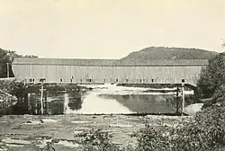 The new bridge connected the new village of South Royalton to the rest of Royalton, and later to the stagecoach route to Chelsea and Tunbridge (present-day Route 110).[2] It was a toll bridge, with gates, a gate keeper, and a few cents' toll. This bridge was torn down in 1903, replaced with a single-lane camelback iron truss bridge, with a cost of $12,282, including about $5,000 for the abutments.[3] Though the iron bridge was the only bridge on the White River to withstand the Great Flood of 1927, the village's approach to the bridge washed away, leaving a 150-foot chasm. A two-lane bridge extension was built of concrete to fill the gap. The 1903 bridge was removed in 1935, after which a new iron bridge was built.[2] The new bridge was a two-lane Parker through truss bridge, and cost $30,021. The bridge was comparable to others built after the 1927 flood, and was identical to Bethel's River Street Bridge, built in 1928.[1]