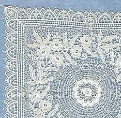 Chemical lace (sometimes referred to as Schiffli lace) is a form of machine-made lace. This method of lace-making is done by embroidering a pattern on a sacrificial fabric that has been chemically treated so as to disintegrate after the pattern has been created. Schiffli machines came into use in the late 19th century. Before that, embroidery machines called Swiss hand machine were used to make chemical lace as well as embroideries.