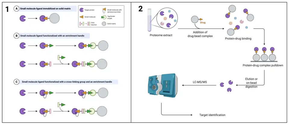 - ^ a b c Chen X, Wang Y, Ma N, Tian J, Shao Y, Zhu B, et al. (May 2020). "Target identification of natural medicine with chemical proteomics approach: probe synthesis, target fishing and protein identification". Signal Transduction and Targeted Therapy. 5 (1): 72. doi:10.1038/s41392-020-0186-y. PMC 7239890. PMID 32435053.