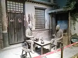 A statue of Chen at the Wuxi Museum, showing his visit to a farmer's home in Baoding to investigate agricultural production and family economic conditions