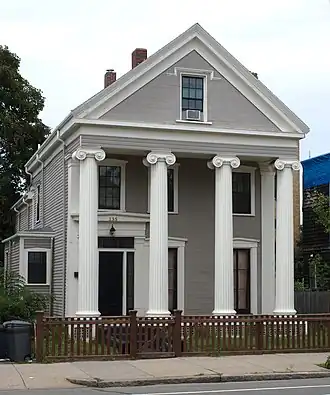 The Cheney Read House is an historic house at 135 Western Avenue in Cambridge, Massachusetts, USA. The 2+12-story wood-frame house was built in 1846 by William Hyde, and is the only house in Cambridge's Cambridgeport neighborhood with a two-story Greek portico. It has four full-height Doric columns, with a gable end that is steeper than the usual Greek Revival style. It has a side-entry plan, with the entrance flanked by pilasters and topped by a pedimented lintel.[2]