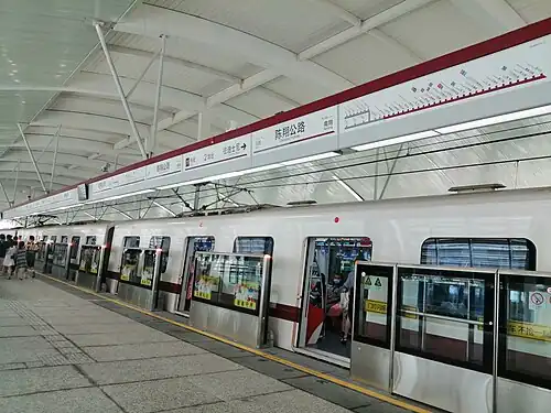 Chenxiang Highway (simplified Chinese: 陈翔公路; traditional Chinese: 陳翔公路; pinyin: Chénxiáng Gōnglù) is a station on Line 11 of the Shanghai Metro in Shanghai, located between Nanxiang and Malu stations in the city's suburban Jiading District. It was conceived to be included with the first phase of Line 11 as Universal Park Station,[1][2] dependent on the expansion program of the adjacent Shanghai Universal[a] theme park.[3] However, with the uncertainly in the viability of the park expansion project, reservations were made in Line 11's alignment to allow for the station to be added at a later date as an infill station while the rest of the Phase 1 opened in 2009. Shanghai Universal closed in 2000 due to financial issues and low patronage,[4] leaving the new infill station unnecessary. Planned redevelopment of the Shanghai Universal lands into dense residential and commercial properties[5] reintroduced the need for a metro station to serve the area.[6][2] The start of the infill station project was approved in 2014 now as Chenxiang Highway station.[7] Construction of the station started in 2018[8] and it was opened on August 25, 2020.[9]