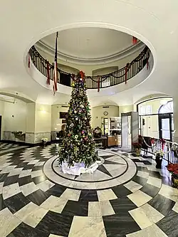 The courthouse served as an overnight shelter for residents when a deadly F4 tornado devastated the Murphy area during the 1974 Super Outbreak.[7] The courthouse was listed on the NRHP May 10, 1979.[1] In 2013 the courthouse underwent a $9 million renovation and expansion. The old Cherokee County Jail built in 1922 was demolished in 2008[8] to make room for the new addition. The courthouse’s interior was modernized. Additional court rooms were added as well as new offices in a newly-constructed section on the rear of the building. The courthouse’s distinctive marble was not used on exterior walls in the expansion.[4]