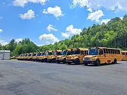 • The Cherokee County School Bus Garage located near Murphy Middle maintains all school buses for the school district. The garage is a dated building constructed in 1960.[46] Buses have low clearance and low parking space inside the garage due to bus size changes since the garage's construction. Cherokee County has 41 yellow school buses and 20 activity buses, a total of 61. School activity buses for the district were purchased in 1950 by Andrews City Schools, 1966 by Hiwassee Dam School, and 1969 by Murphy City Schools.