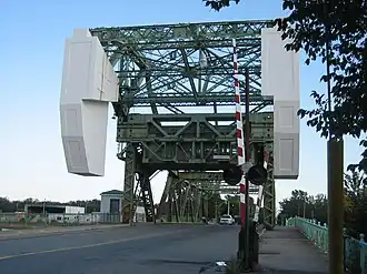 The Cherry Street Strauss Trunnion Bascule Bridge is a bascule bridge and Warren truss in Toronto, Ontario, Canada.[1] Located in the industrial Port Lands area, it carries Cherry Street over the Toronto Harbour Ship Channel and opens to allow ships to access the channel and the turning basin beyond. There was previously another bascule bridge further north on Cherry Street. The other, smaller bridge, crossed the Keating Channel, while this bridge crosses the Ship Channel.