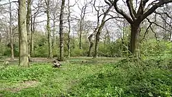 The wood is a surviving fragment of a much larger wood shown on an 1837 map as Great Wood, and it is now surrounded by suburban housing. Until 1990 it was a rubbish dump, but it was then restored as a nature reserve.[4] The main trees are pedunculate oak, ash and horse chestnut. Flowers include bluebells, ramsons and wood melick, and twenty-five species of bird have been recorded, including three species of woodpecker, chiffchaff and tawny owl.[5][3]