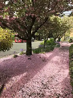 The Seattle Japanese Garden has cherry trees.[3] Pike Place Market in downtown Seattle also has cherry trees;[12][13][14] eight trees were planted along Pike Street in December 2023.[15] A stretch along 22nd Avenue, between East John Street and East Republican Street, has Chinese double cherry, Kwanzan flowering cherry (Prunus 'Kanzan'), and Yoshino cherry blossoms. Part of Condon Way West, has Kwanzan trees. An area near NE 55th Street and 12th Avenue NE is also known for blossoms.[10]